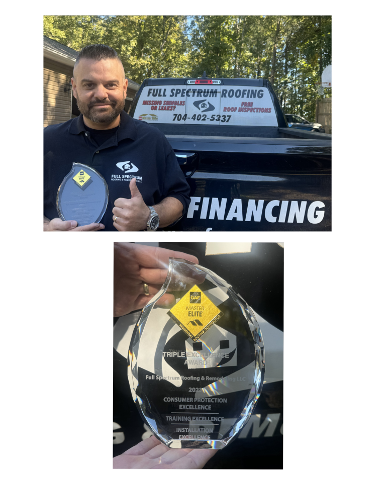 Our Owner Jarrod Dattoli was presented in 2024 with the prestigious GAF Triple Excellence Award. This award is the highest honor you can receive in the roofing industry and is presented by the world’s biggest shingle manufacture,GAF. Though extremely difficult to receive, it displays our company’s dedication to excellence in our industry! When you hire us? You know you are hiring the best!